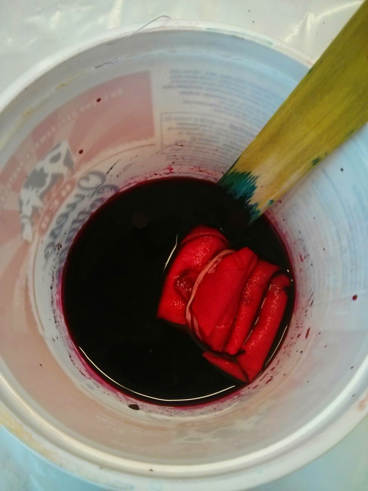 I'm doing a bunch of experiments this week with Procion MX cold water dyes and cotton. I am going to make a bunch of swatches to really understand how the color works. I'm also playing with folding the fabric to get interesting patterns.